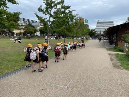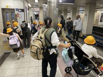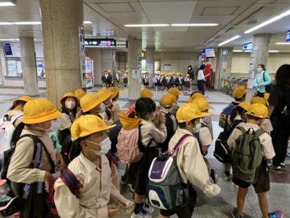 今から学校へ帰ります。もう地下鉄に乗車しています。みんなお約束通り、静かにしています。