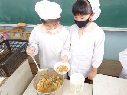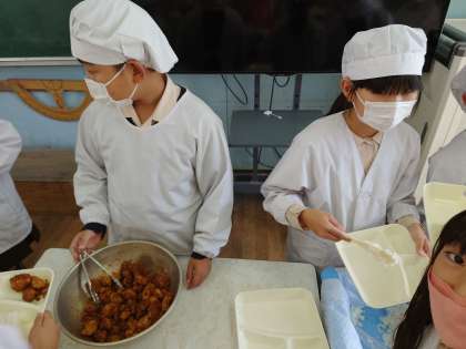 煮物にはじゃがいも、にんじん、こんにゃく、玉ねぎ、さんどまめ、たけのこと具だくさんです。