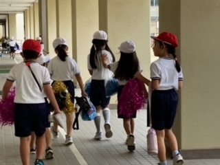 今日は朝からあいにくの雨で運動場での練習はできませんが、体育館からはにぎやかな音楽と元気な足音や掛け声が響いてきています。