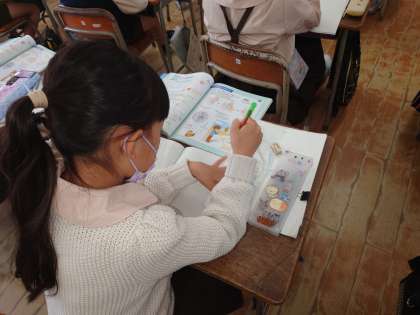 3年生が理科をしていました。影の向きを調べてまとめていました。ストローの影を時間ごとに調べています。