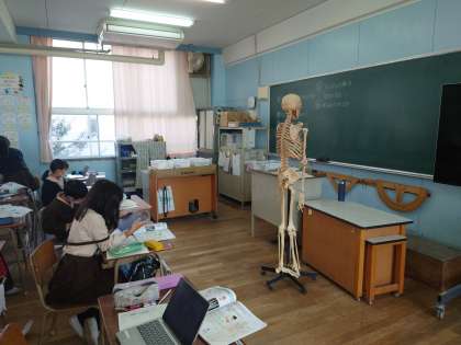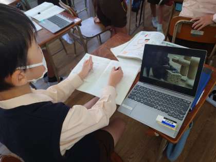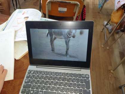 四年生も理科をしていました。タブレットを使って生き物の体で曲げられるところを観察していました。