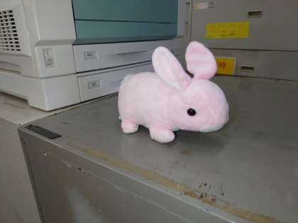 うさぎのぬいぐるみが校内の花壇に落ちていました。職員室で預かっています。