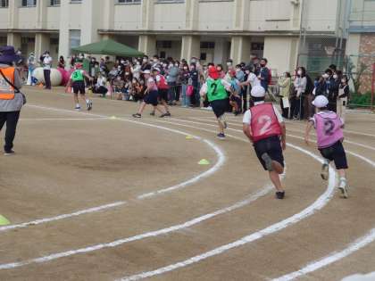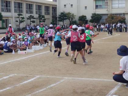 5、6年は同時入場でリレーを行います。
