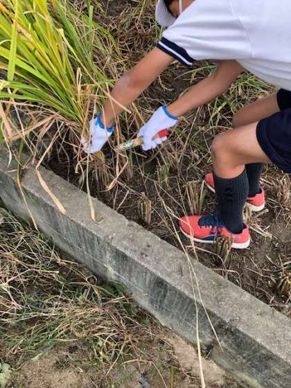 慣れない鎌を使って稲の感触や匂いを感じながら刈りました。