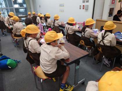 あっという間に食べ終わって片付け完了の子もいました。食べ終わったらもう一度キッズプラザで少し遊びます。