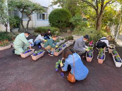 PTAの方々が花植えにきてくださいました。満開になる日が楽しみです。いつもありがとうございます。