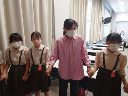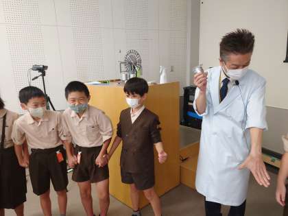 5年1組やりたい子は輪になり手を繋いで静電気を体験しました。