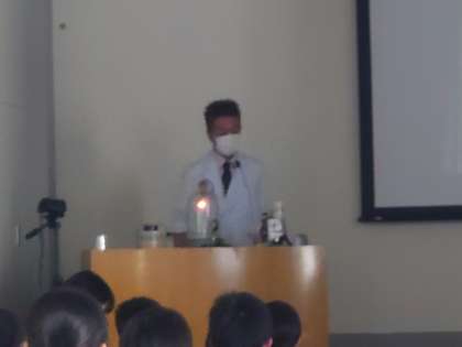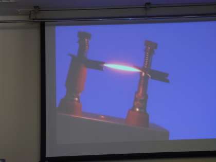 蛍光灯や電球の実験を見ました。フィラメントの代わりにシャーペンの芯を使って明かりをつけました。そのままだとシャーペンの芯が燃えてなくなるので、酸素を抜いて電気を通すといつまでも光り続けます。電球のガラスの中は酸素がないからフィラメントが燃えてなくならずいつまでも光り続けることができるのだそうです。