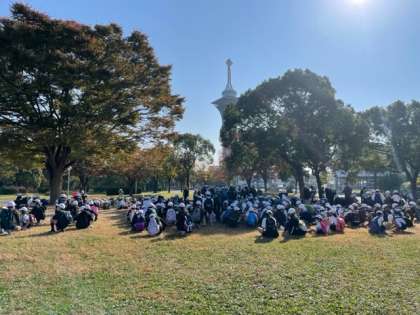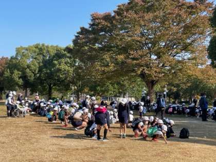 班長会議をして、注意事項を再確認しています。木々の葉も色づき、快晴にも恵まれ、絶好のオリエンテーリング日和です。