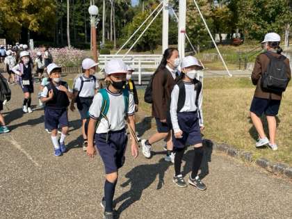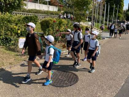 みんなどれだけ歩いたのかな?庭園入口にいますが、どんどん帰ってきます。