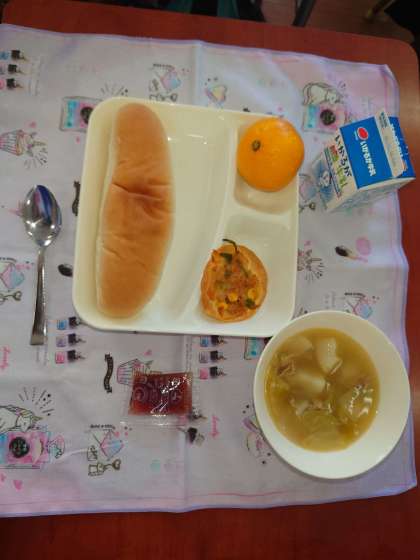 今日のスープ煮は、豚肉、枝豆、人参、じゃがいもなど具だくさんです。