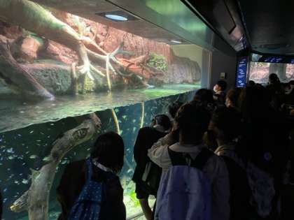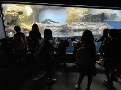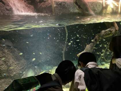 みんな興味津々で、魚の動きに興奮しています。