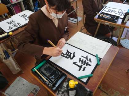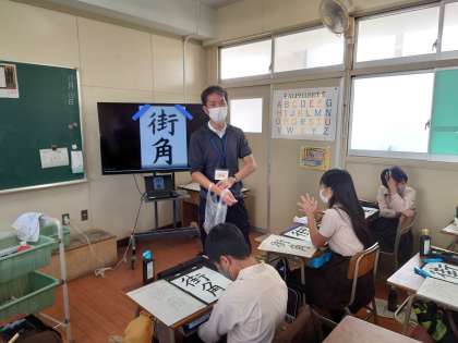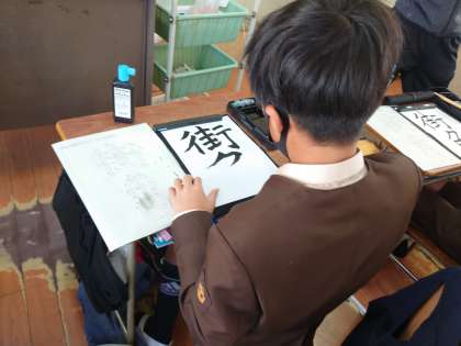 6年生が習字をかいていました。街角、難しい字ですが丁寧にかけています。