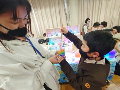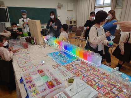 多目的室でPTA親子教室がありました。今回は水族館づくりです。