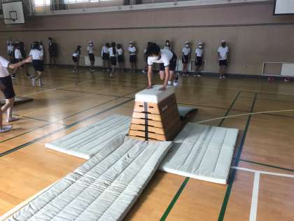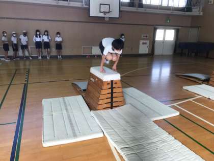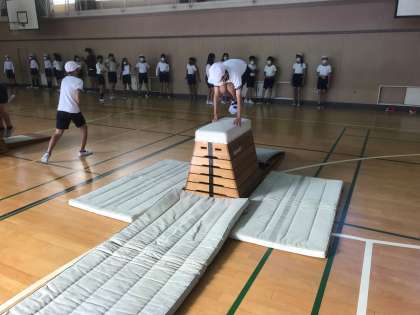 跳び箱を縦にしても、跳べる子も増えてきました。
