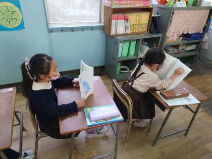 1年生が国語をしていました。おとうとねずみチロを読んでいました。