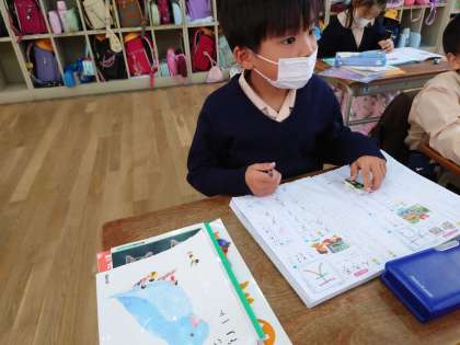 お隣は漢字を書いていました。天という字です。