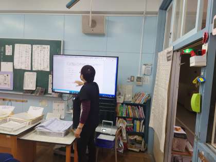 3年生がタブレットを使って自主学習アンケートに答えていました。タブレットの操作上手になっています。
