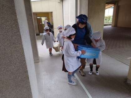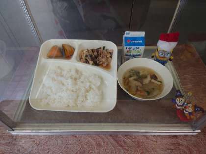 今日の給食には干しずいきが出ています。ずいきとはなにか知っていますか??ずいきとは里芋の葉柄のことだそうです。