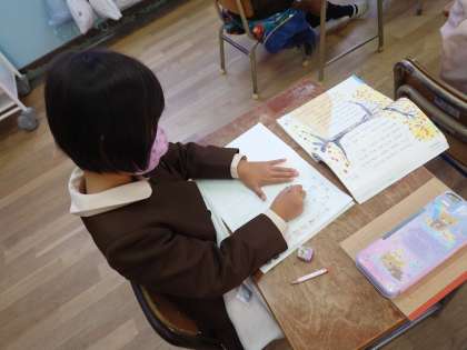 1年生が国語をしていました。おとうとねずみチロの学習です。