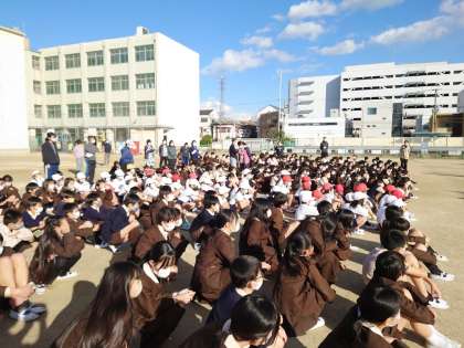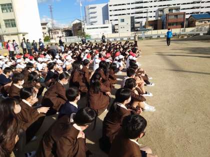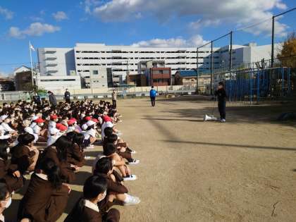 今日は避難訓練(不審者対応)がありました。鶴見警察から2名来ていただき、警察の方が不審者役で実施しました。