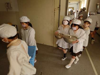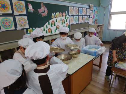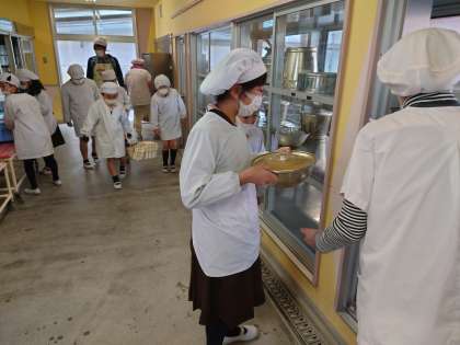 今日はめったに給食に出ない菊菜の胡麻和えが献立に出ています。大阪でも菊菜は作られているそうですが今年は不作なようです。