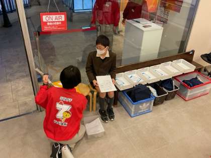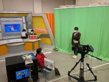 テレビ大阪のスタジオを体験していました。上手に原稿を読んでいました。