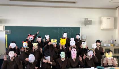 23日から始まる「あいさつ週間」で使用するお面を作りました。