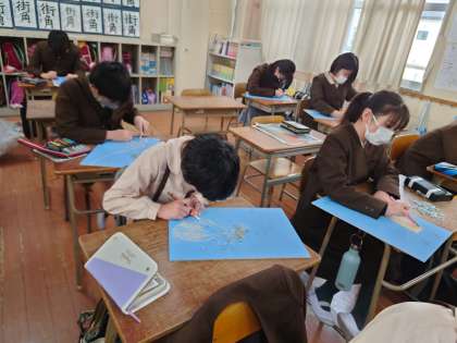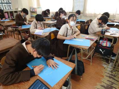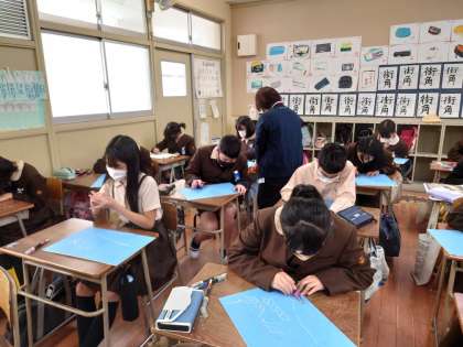 6年生が図工をしていました彫刻刀を使っていました。集中して作業していました。。
