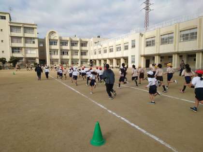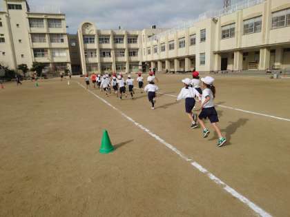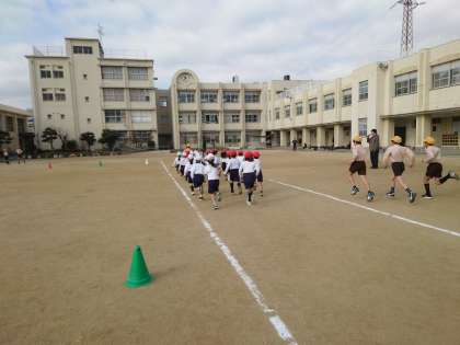 一年生にとって初めてのかけ足タイムです。みんな頑張ってますよ。