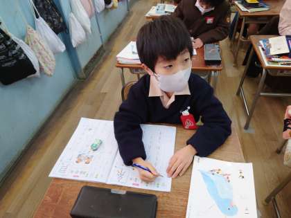 1年生その後漢字を書いていました。