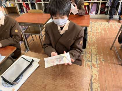 チラシで簡易スリッパを作る方法も教えて貰いました。
