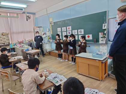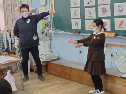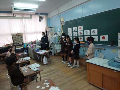 カードを一枚選んでステレオゲームをしました。何と言っているか、当たると減っていきます。最後一人になるとわかってしまうので、ジャスチャーをして当てています。