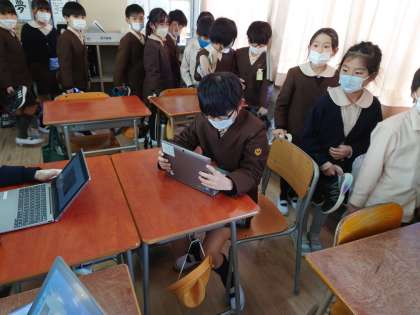 今日は3年生がクラブ見学をしています。各クラスに分かれてクラブを見学しています。