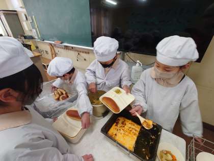 焼きプリンは学校で調理しています。