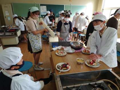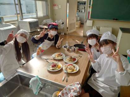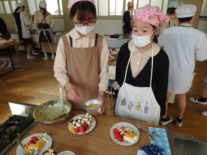 6年生が調理実習をしていました。パンケーキを作っていました。