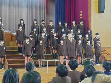 6年生から感謝の言葉と歌やリコーダーの演奏がありました。
