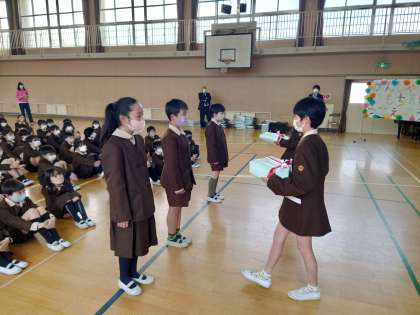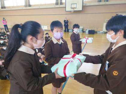 6年生からぞうきんのプレゼントです。あっという間の1時間でした。