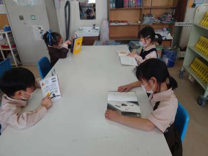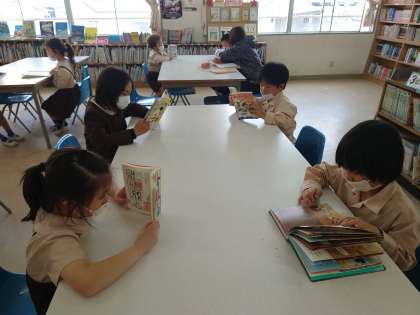 1年生が図書室にいました。年度末のため貸出はしていません。その分この時間にしっかり読んでいました。