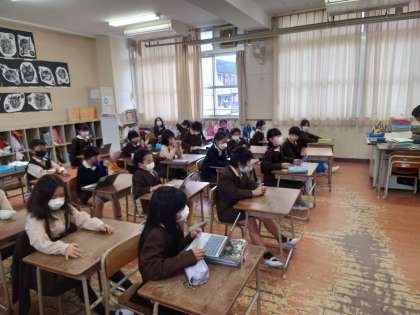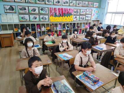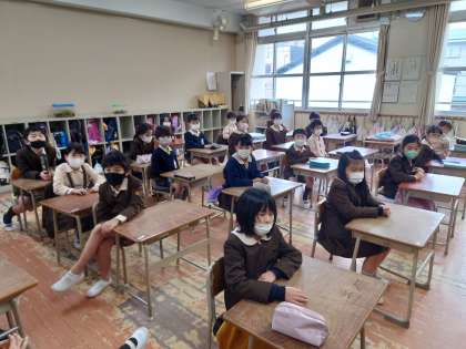 今日は運動場の状態が良くなかったので放送朝会でした。