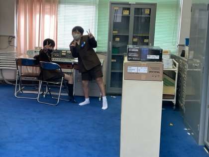 放送室をのぞいてみました。毎日、お昼に軽快な音楽を流してくれています。皆さん楽しみにしています。いつも、ありがとう。