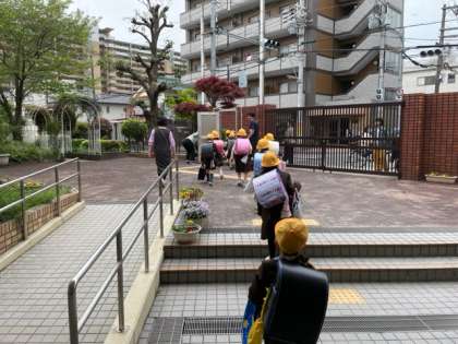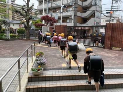 今、1年生が下校しました。小学校での1週間はどうでしたか。新しいことばかりで疲れたと思います。明日、明後日でリフレッシュして、また月曜日には、元気に笑顔いっぱいで登校してください。
