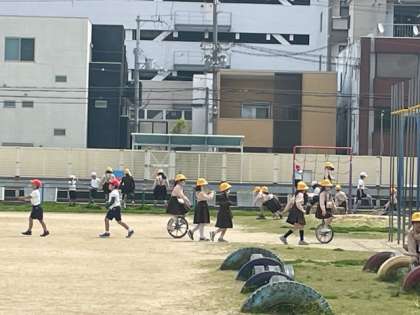 多くの児童がグラウンドで楽しそうに遊んでいます。チャイムがなると同時に、教室に向かってダッシュをしていました。ケジメのある行動、なかなか素晴らしいです。