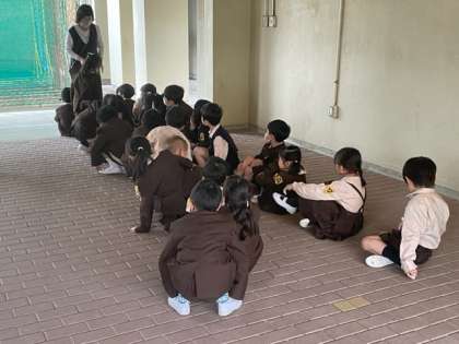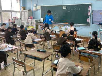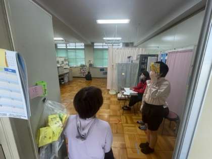 1年生が整列の練習をしていました。保健室では、視力検査を行っていました。