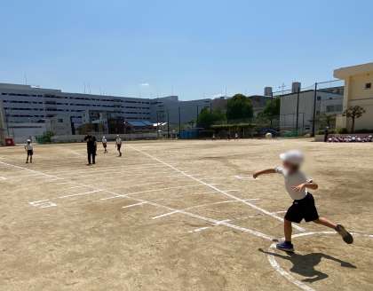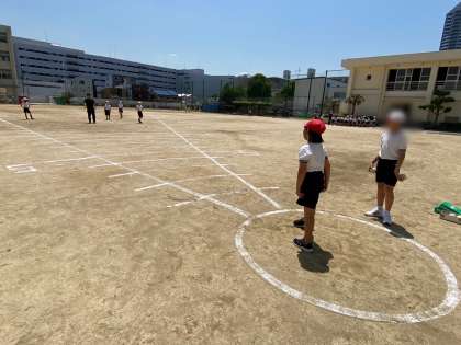 2年生は、新体力テストのサポートを5年生にしてもらいながら、新体力テストを行いました。