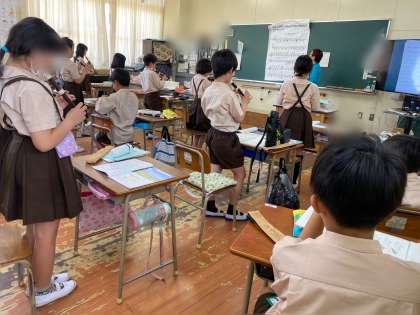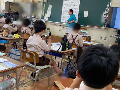 4年生は、音楽でリコーダーで、エーデルワイスの2部奏の練習しています。リズムやメロディの違いを感じながら、演奏しています。