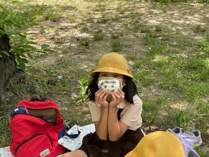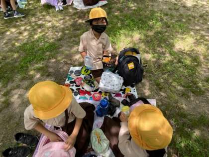 お弁当タイムです。お弁当をみせてくれました。グループになって楽しく食べていました。