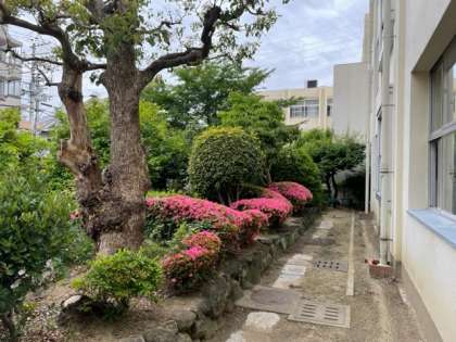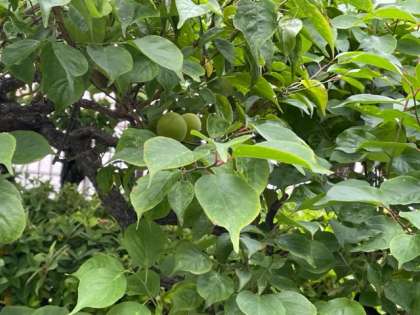 梅の実がなっています。正門付近の桃の木にも実がなってきました。