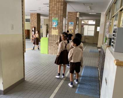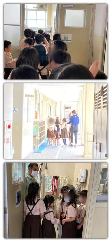2年生が1年生に、それぞれの部屋は何をするところか、説明をして校内をまわって行きました。
