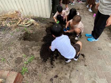 生活の学習で、ビニルポットに土を入れ、種植えました。